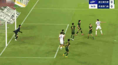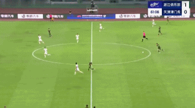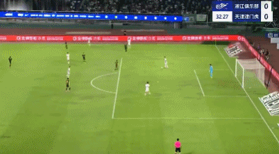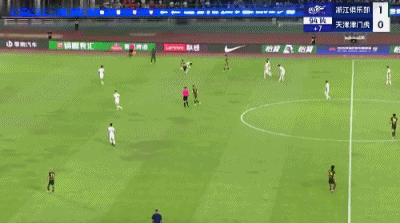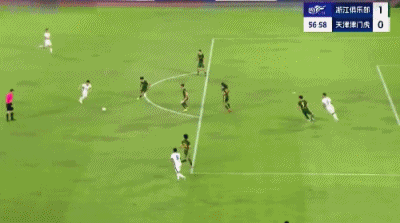 第45分钟,闫炳良出击失误,亚戈-卡列洛头球破门,浙江1-0津门虎