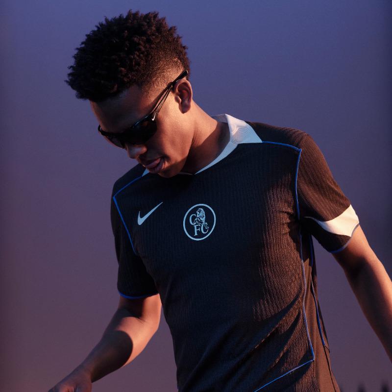 该版本的第二客场球衣为黑色复古版本,其设计灵感来源于具有重大意义的2004/05赛季的深色图案——当时切尔西首次加冕英超冠军。