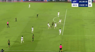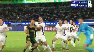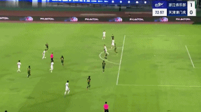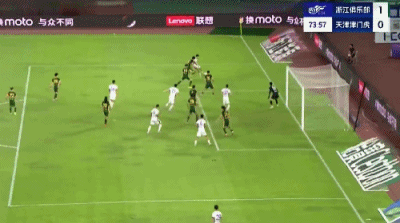 第45分钟,闫炳良出击失误,亚戈-卡列洛头球破门,浙江1-0津门虎